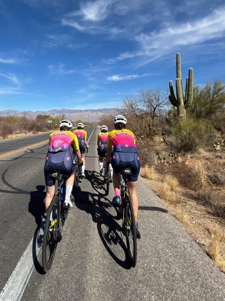 Our first full day with the team, we focused on endurance training, maintaining a steady pace while soaking in the natural beauty around us. Then we spiced things up with practicing some team pacelines, lead out spirits, and jump sprints. These skills ensured we communicated effectively and worked to execute the goal at hand. The ride was invigorating and set a positive tone for the rest of our time in Tucson.